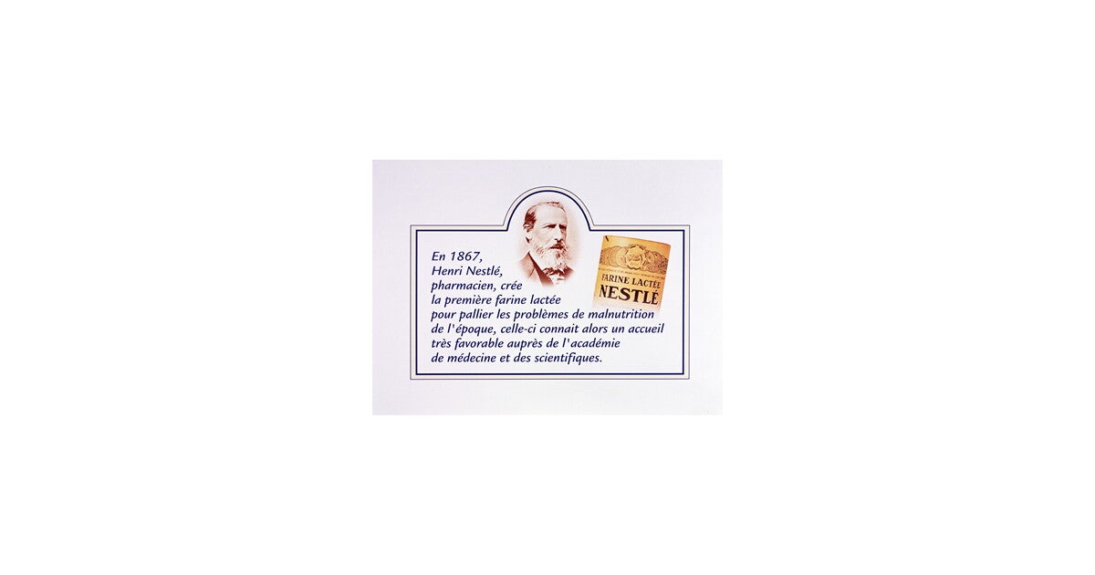 En 1875, Henri Nestlé vend son entreprise pour créer la « Société Farine Lactée Henri Nestlé ». Une entreprise qui aujourd’hui encore est réputée pour son innovation, sa puissance et ses recherches pour assurer la sécurité optimale des produits alimentaires pour bébés. La « Farine Lactée » de Nestlé n’a gagné pas moins de quarante prix ! Le prix le plus important est celui de l’Exposition Mondiale à Paris de 1889.